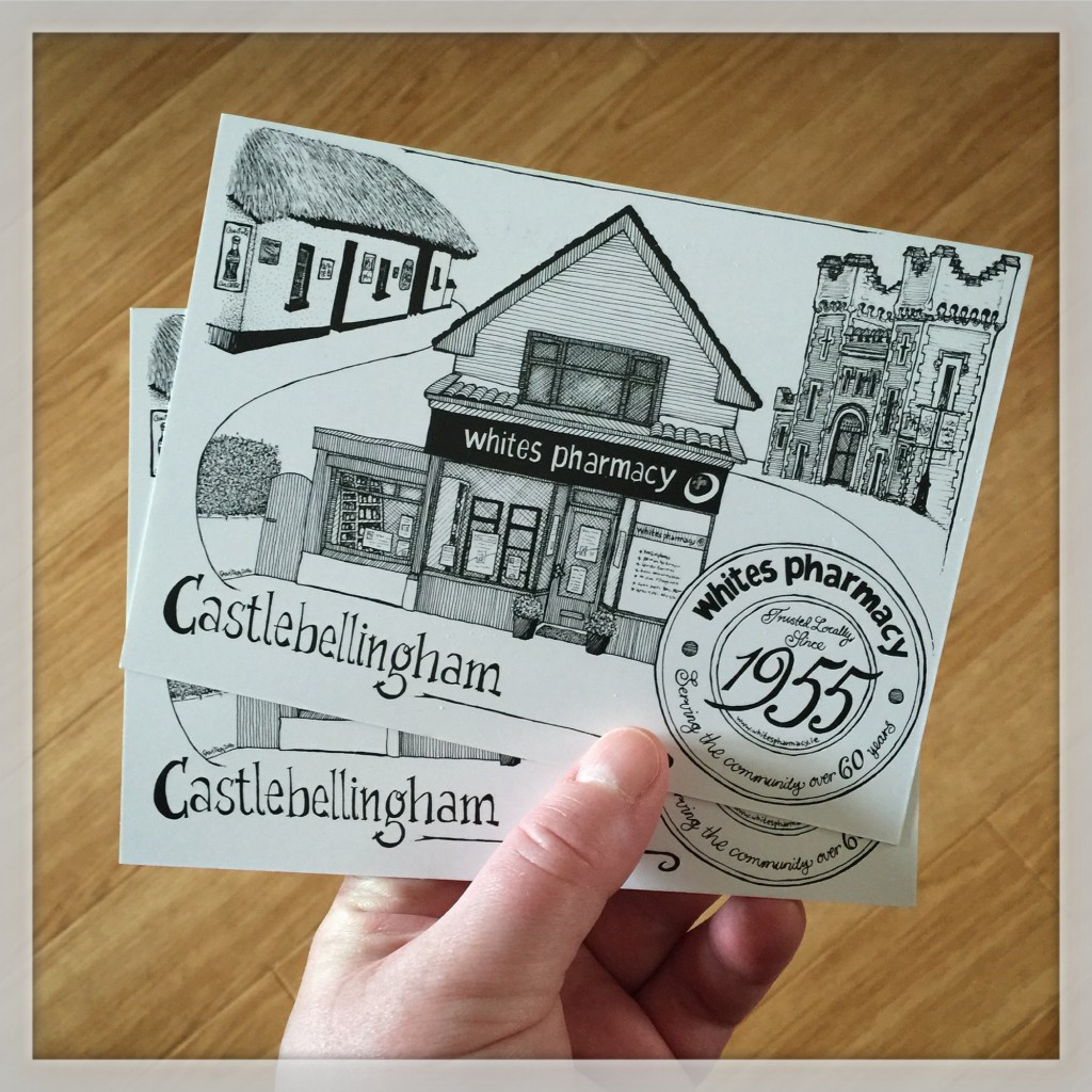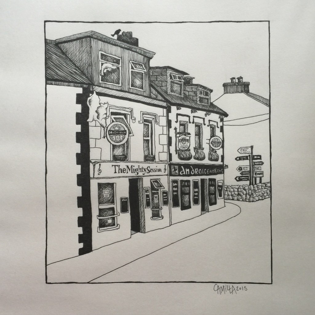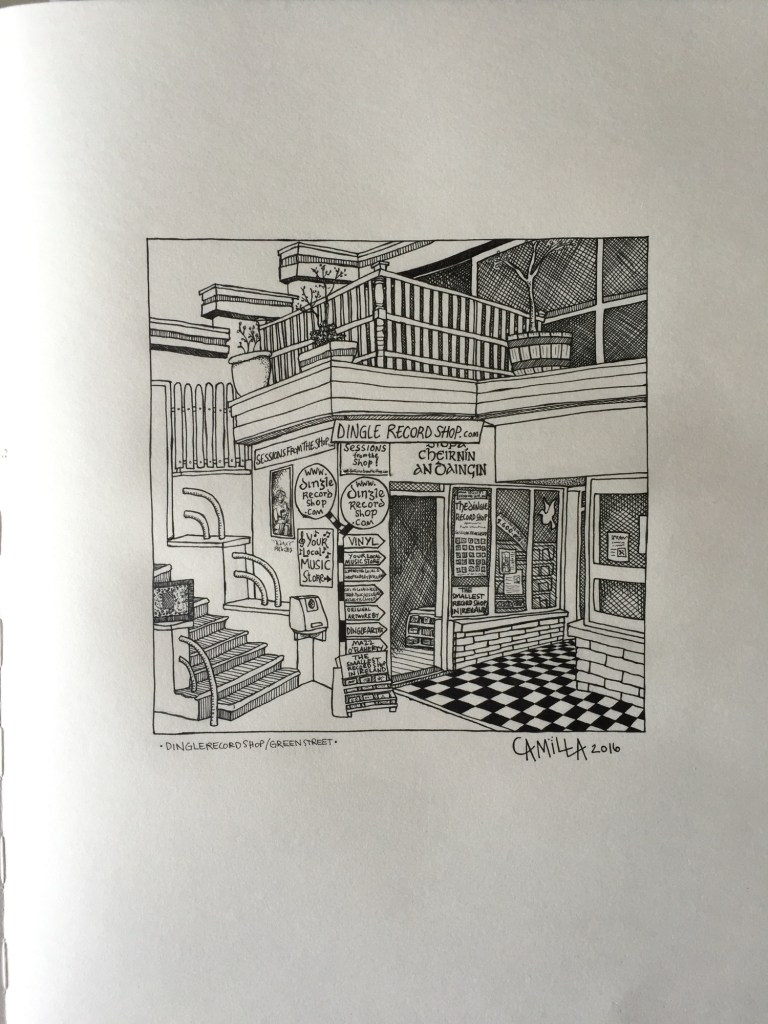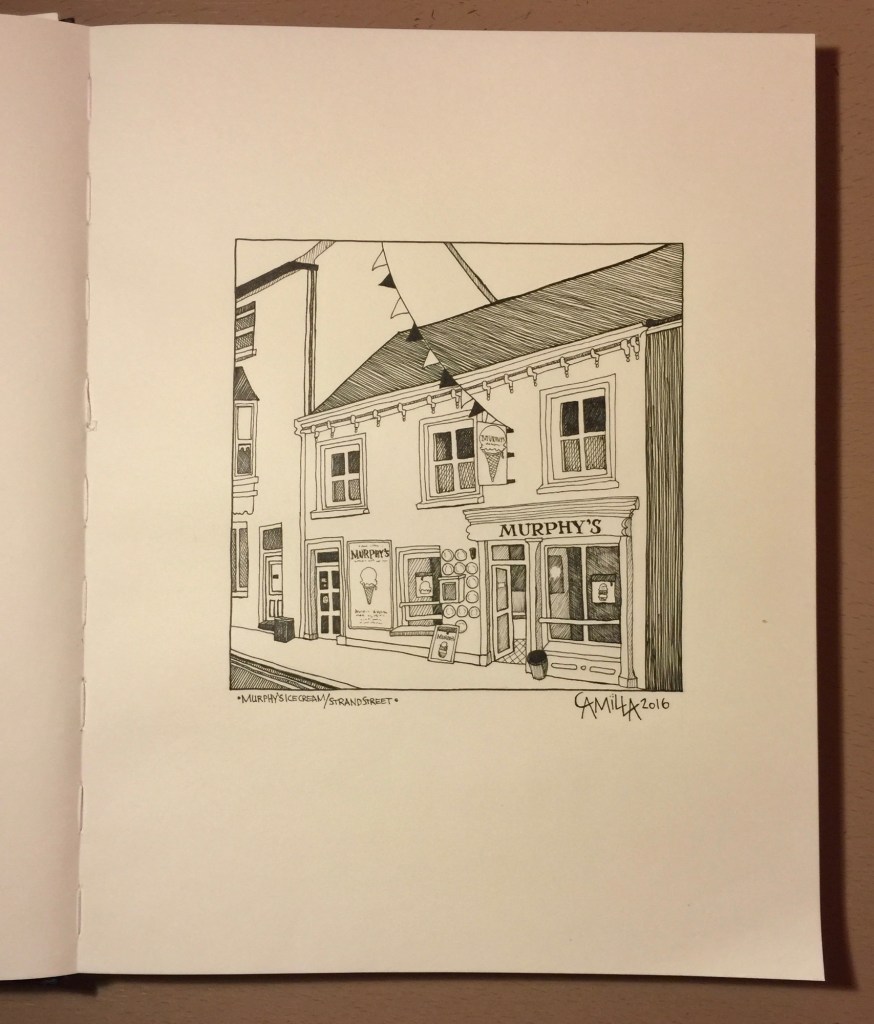 The following images are drawing of street views in Ireland and Sweden. I start working with pencils and I finish them off with line markers.